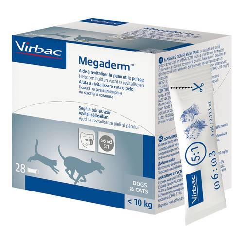 MegadermDescrizione Mangime complementare per cani e gatti. Supplemento nutrizionale che contiene acidi grassi essenziali (AGE) di elevata qualità, appartenenti alla famiglia degli omega 6 (w6)......