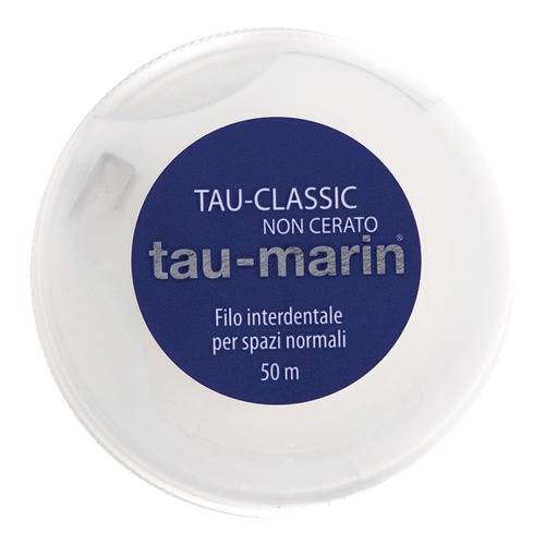 Tau MarinFILO INTERDENTALE CLASSICO NON CERATO compatto e resistente con alta resistenza allo sfibramento. Rimuove efficacemente la placca sotto il bordo gengivale e tra i denti. Componenti: f......